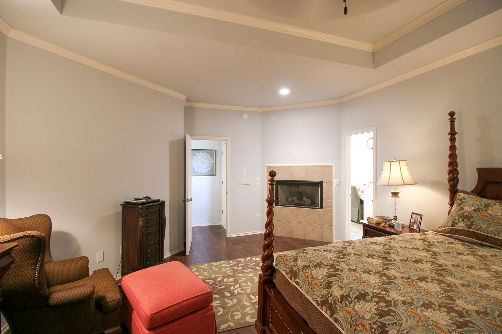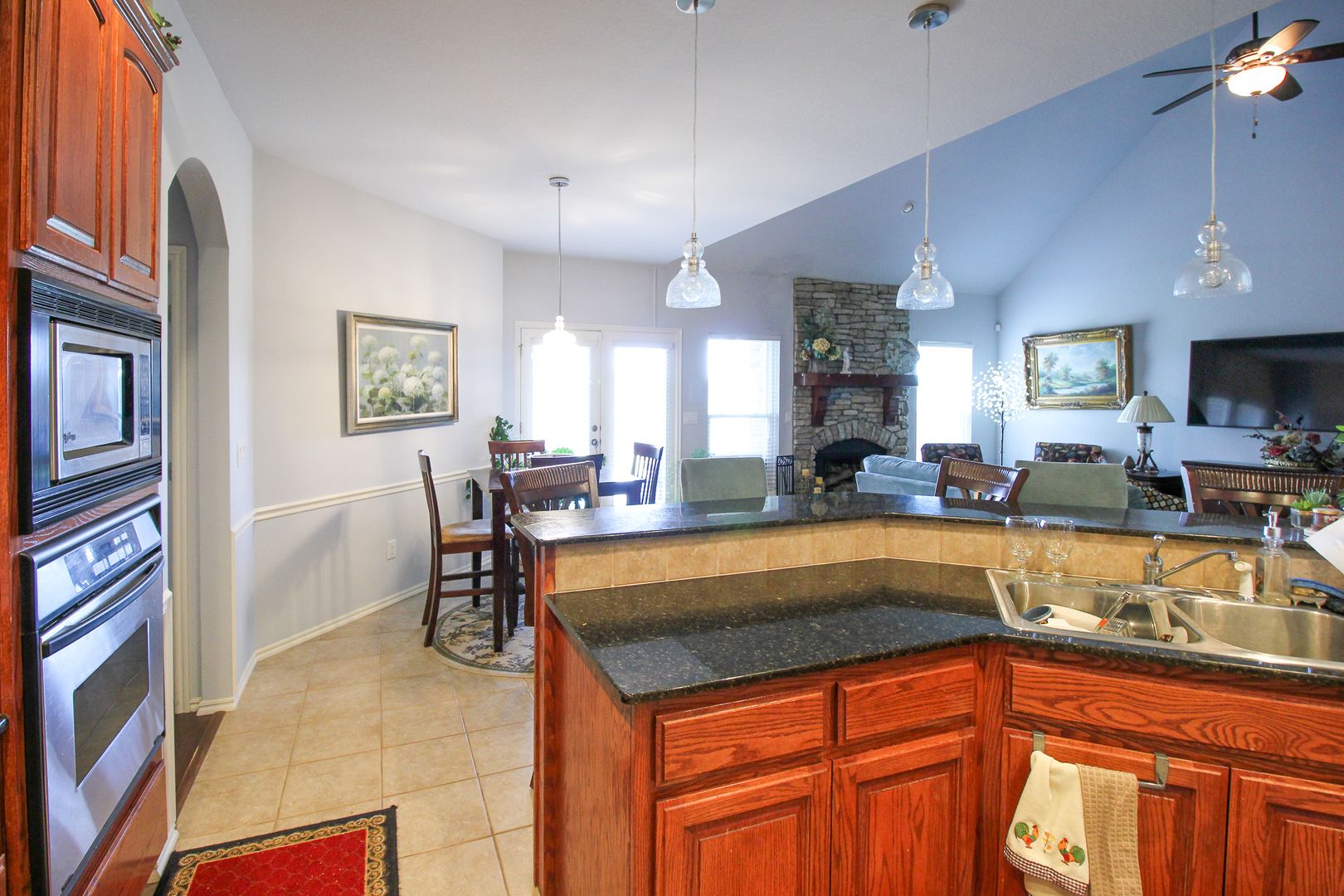 Master suite w/fireplace and guest suite both on first floor. Huge kitchen open to great room w/fireplace. Formal dining and study on first floor. Game room, theater room and 3 full bedrooms upstairs. Large fully fenced back yard! Easy highway access, close to shopping.