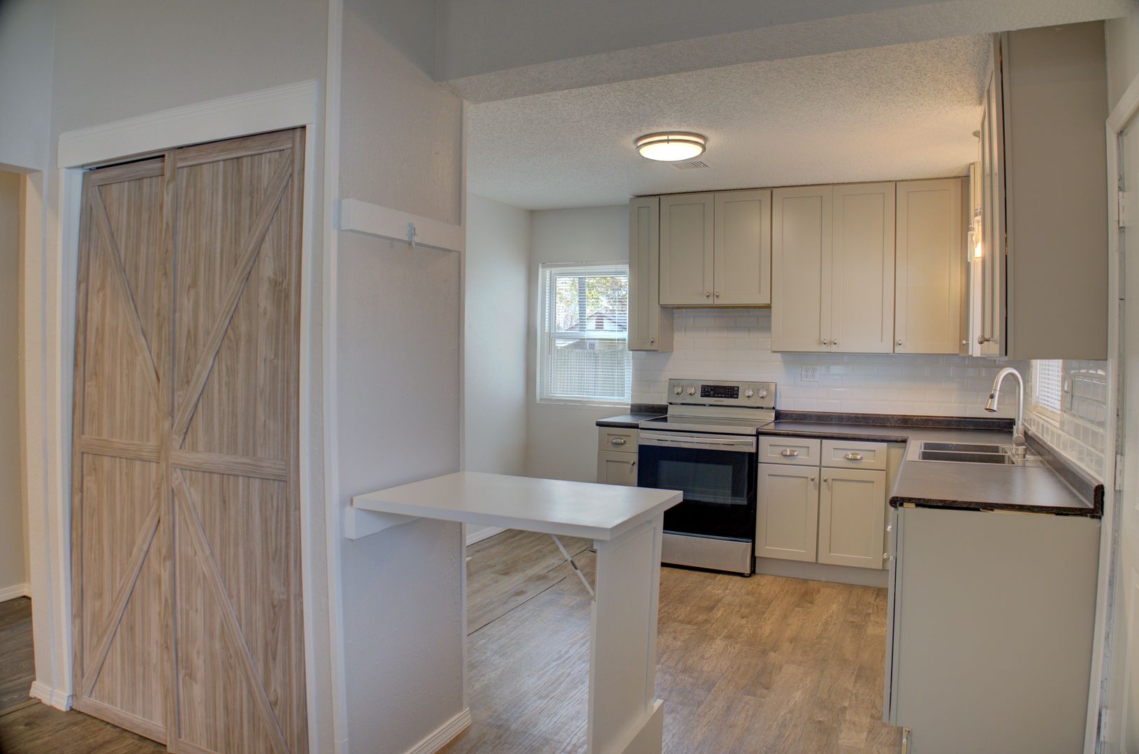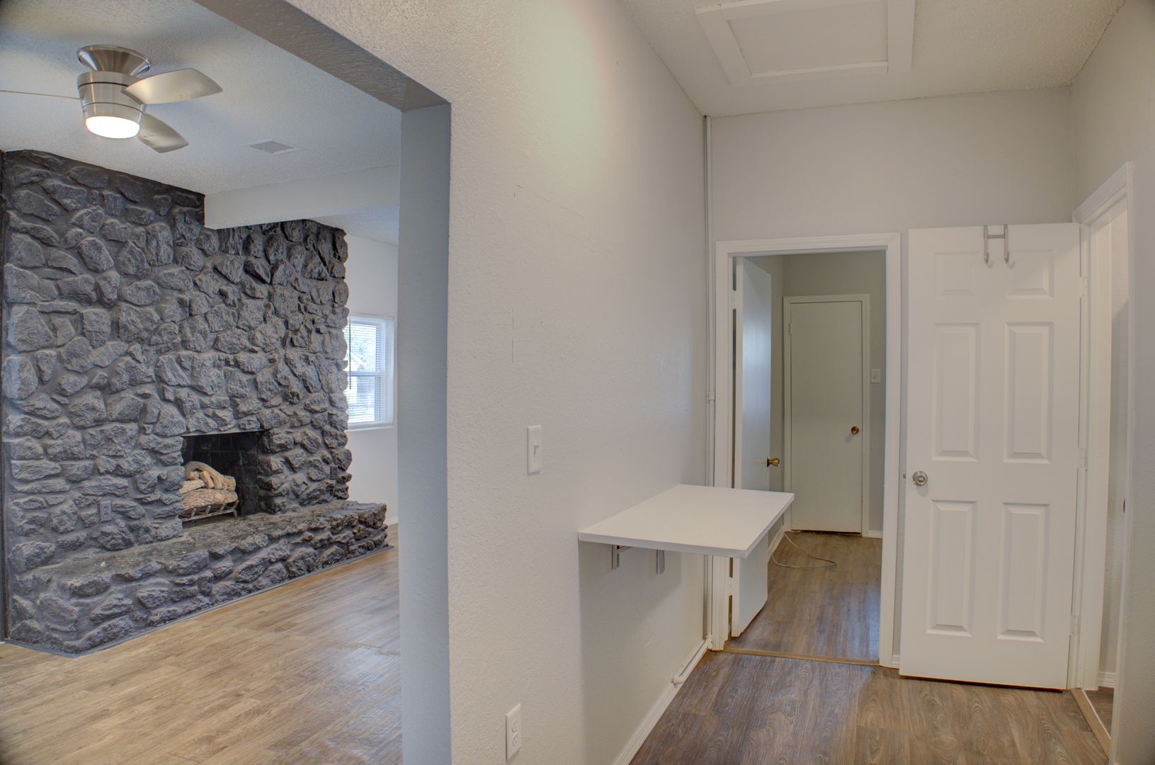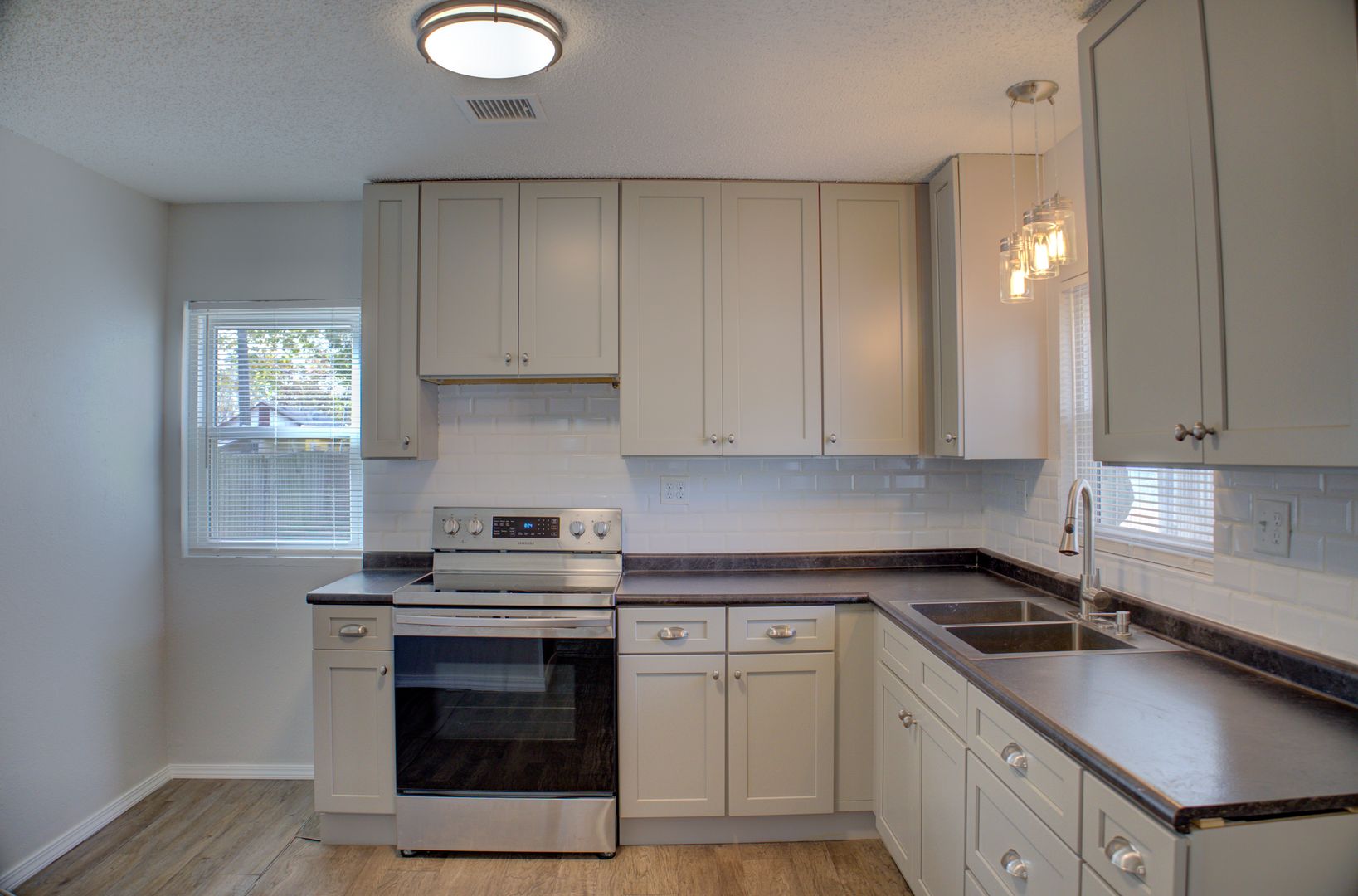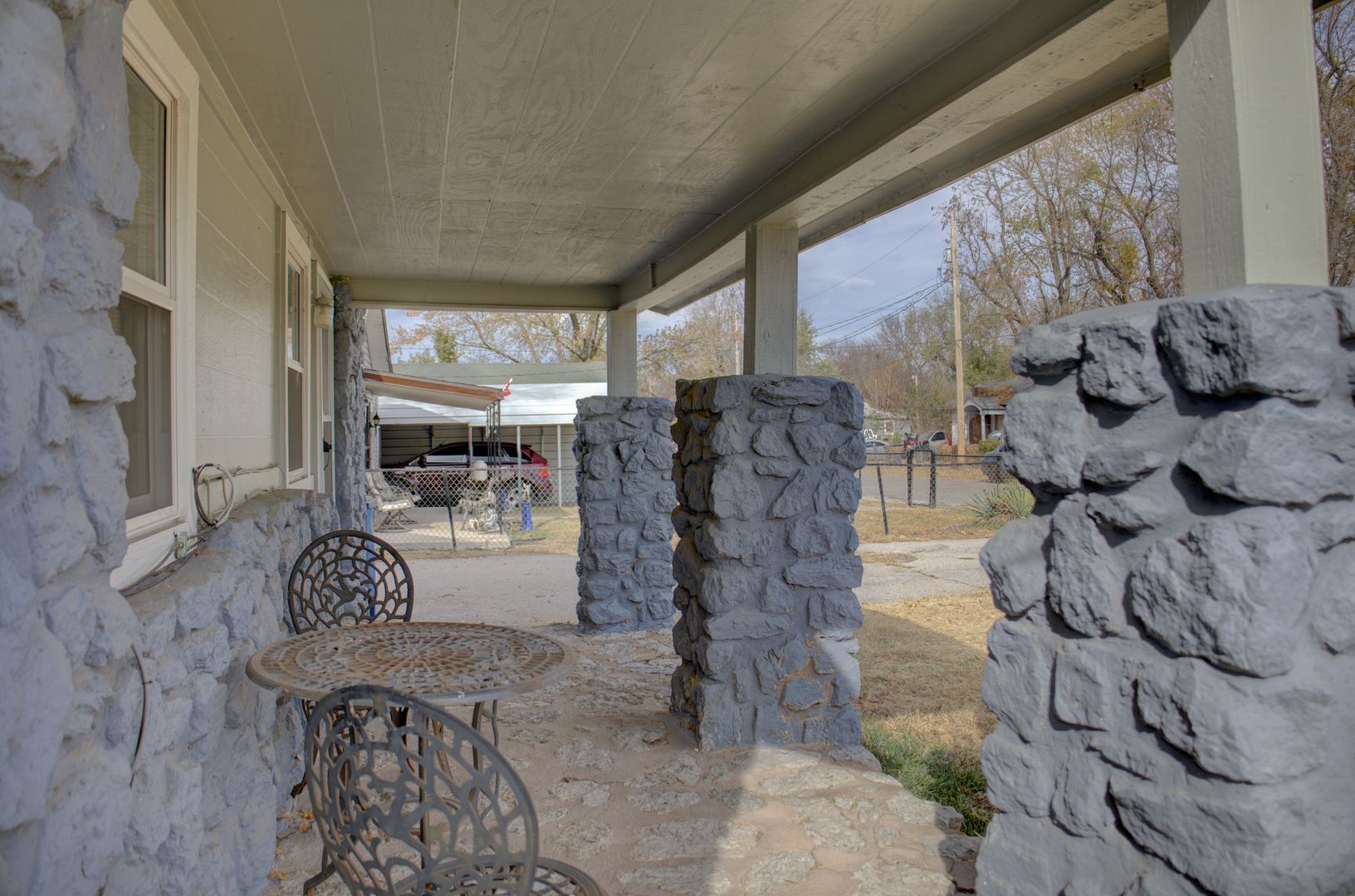 Adorable and recently updated within the last 5 years! Kitchen cabinets to the ceiling, deep sink, pantry, tankless hot water heater, double pane windows, shower & vanity. Master fits king size bed. Large stone front porch. Fully fenced and gated. Laminate floors throughout.