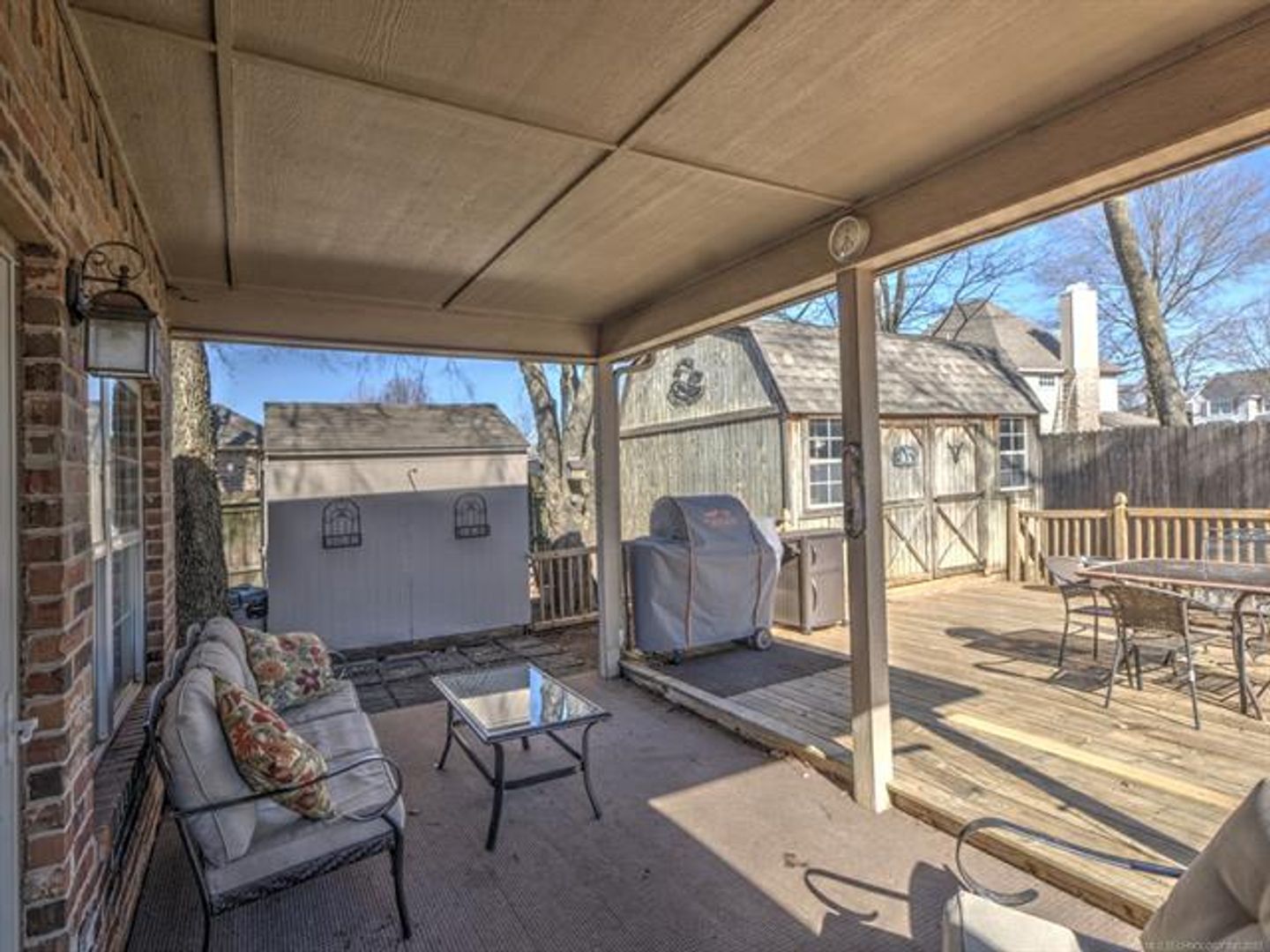 Tall ceilings, crown molding with plenty of natural light make the living, kitchen and dining area an enjoyable place. Laundry is located by the bedrooms. Private backyard is an oasis to enjoy with a wood deck for entertaining guests & 2 storage buildings.